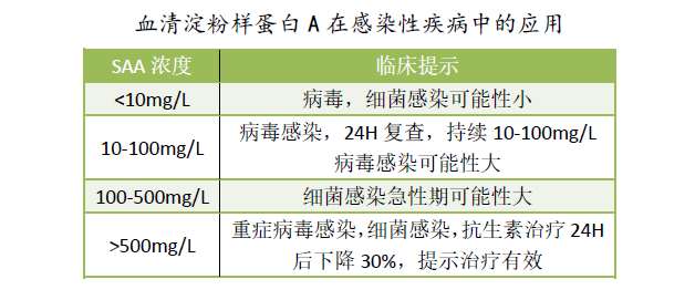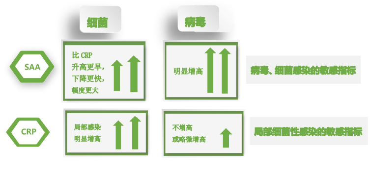 临床考虑有感染、有炎症的时候,使用SAA 与CRP 联合检测,可以区分感染的原因,是细菌感染还是病毒,如果是病毒,可以避免滥用抗生素。