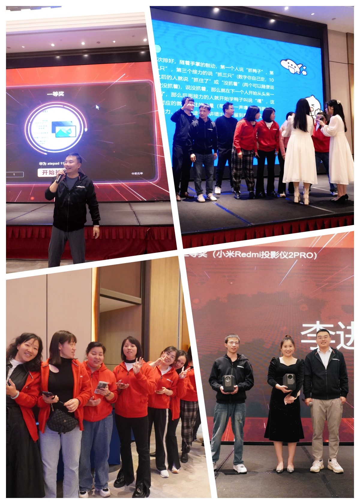 年会现场进行了抽奖环节和游戏,使整个年会活动变得更加喜庆和有趣。