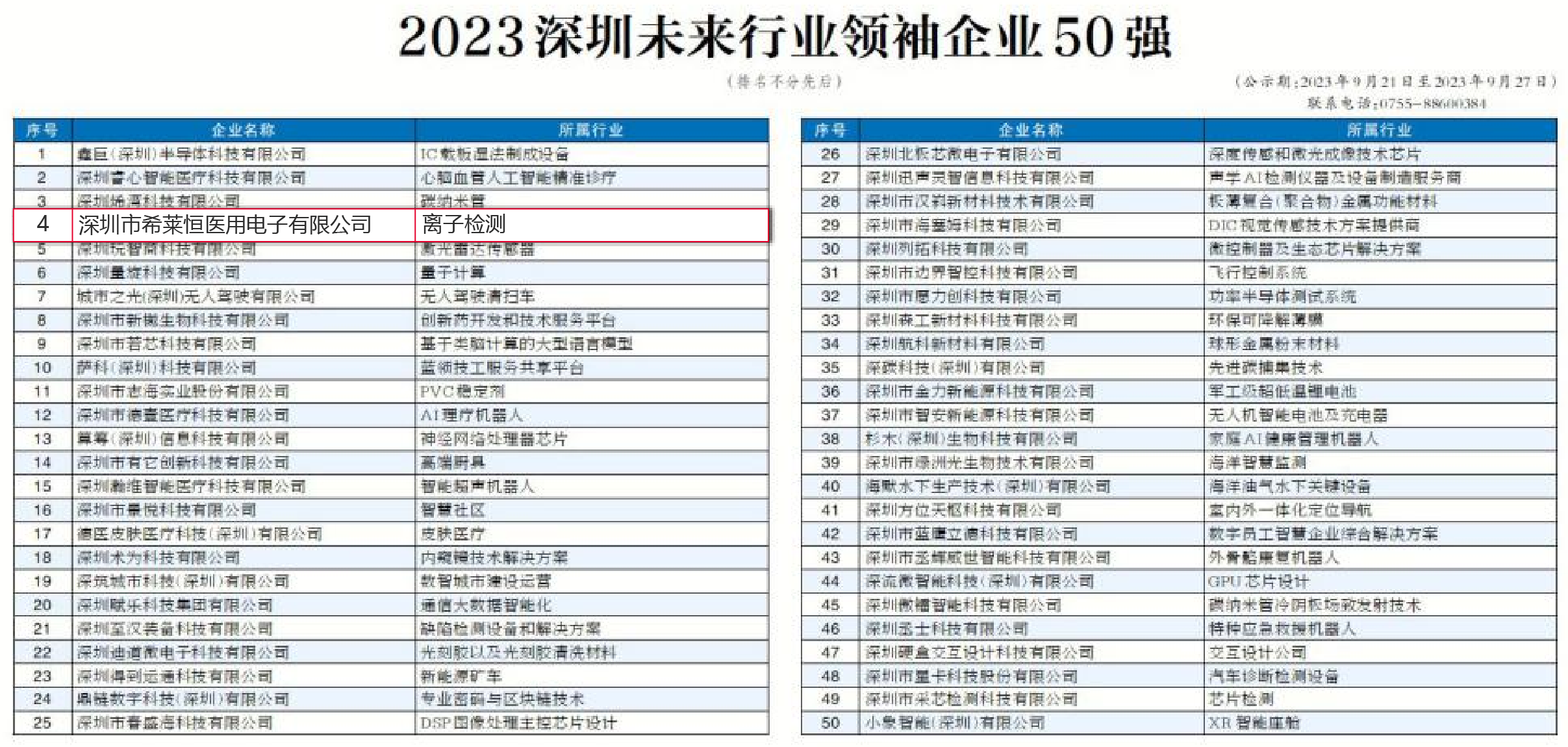 近日,由深圳市工商业联合会(总商会)、深圳市行业领袖企业发展促进会等在历时6个月评选出的“2023深圳行业领袖企业100强”和“深圳未来行业领袖企业50强”共150个,具有战略发展意义、具有创新引领效应的细分行业及行业内的领袖企业。其中,深圳市希莱恒医用电子有限公司(以下简称:希莱恒)获评“深圳未来行业领袖企业50强”。
