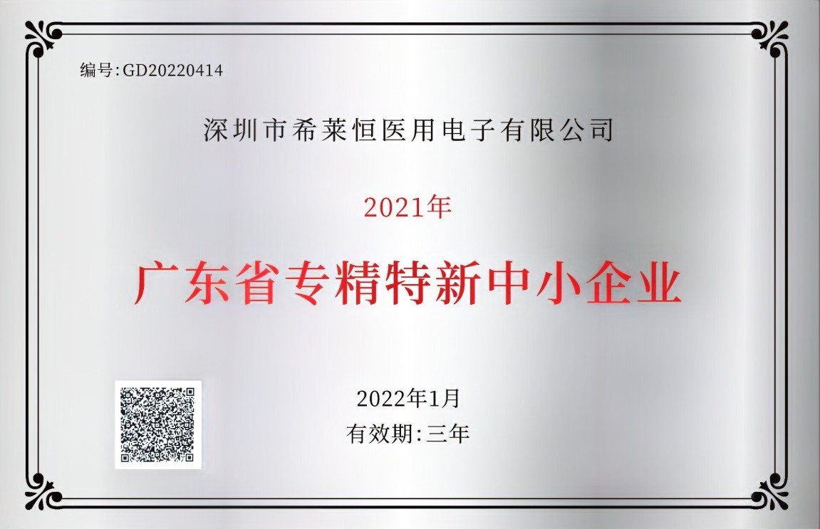 希莱恒公司是通过相关机构评审认定的“国家高新技术企业”、“软件企业”,是深圳大学的“实习基地”和“就业实践基地”,公司拥有多项“发明专利”、“实用新型专利”、“外观专利”以及“软件著作权”, 质量体系通过了ISO9001和ISO13485的 CMD体系认证,主要产品通过CE认证、NGSP认证。